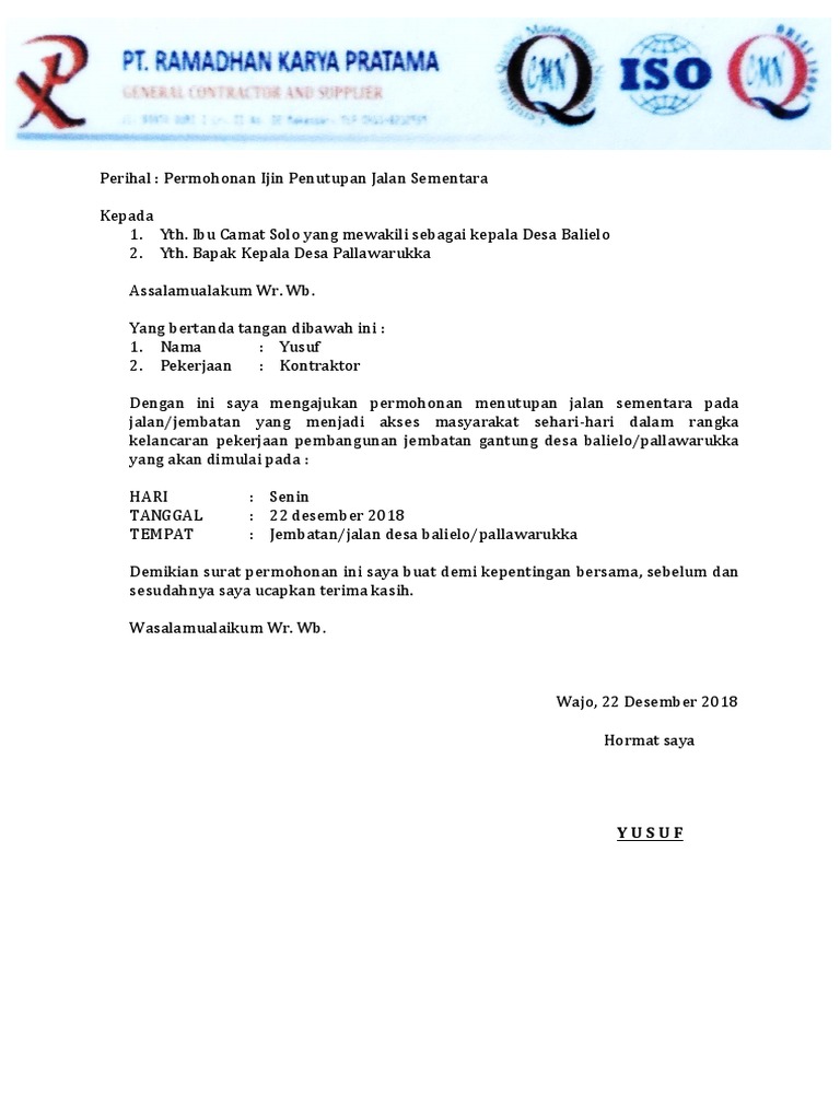 Surat Permohonan Penutupan Jalan Sementara Pdf